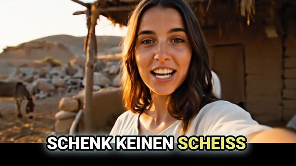Da die Videos nicht mit den allerneuesten „KI“-Videowerkzeugen erstellt wurden, sondern mit Veo 3 von Google, steckt in den Videos am Ende doch wieder eine Menge menschlicher Hirnschmalz und vor allem Geduld im Umgang mit den Zwischenergebnissen „der KI“. Zuweilen sind sie sogar witzig: Maria, die Mutter Jesu, fordert zum Thema „Nachhaltig einkaufen“ frech: „Schenk keinen Scheiß!“