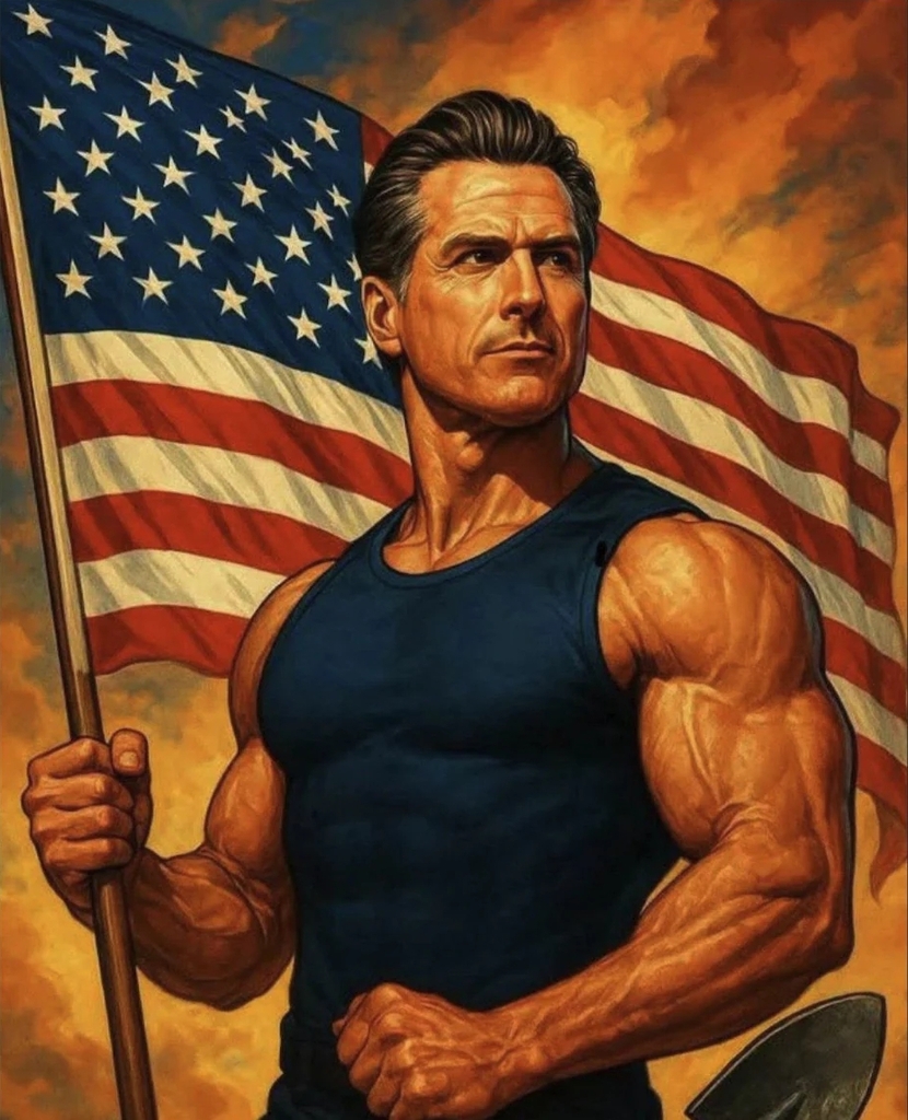 Ein „KI“-Bild, das Gavin Newsom zeigen soll und von seinem Kommunikationsteam auf der Plattform X geteilt wurde.