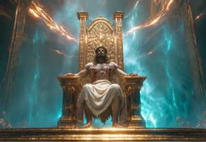 Mit dem durchs Land wandernden, predigenden und zuweilen zärtlichen Zimmermannssohn oder dem gedemütigtem, am Kreuz verendenden Heiland hat die blutüberströmte Heldenfigur des „KI“-Bildes wenig gemein. (Dass obendrein ihre Hände völlig überdimensioniert sind und sie, statt auf dem Thron zu sitzen, recht unbequem herumhockt: geschenkt.)