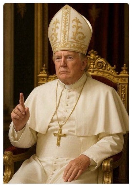 Mit generativer KI erstellte Darstellung von Donald Trump als Papst, die er auf Truth-Social verbreiten ließ.